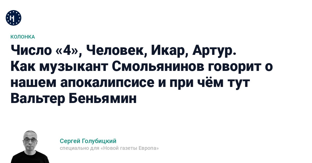 Как музыкант Смольянинов говорит о нашем апокалипсисе и при чём тут Вальтер Беньямин