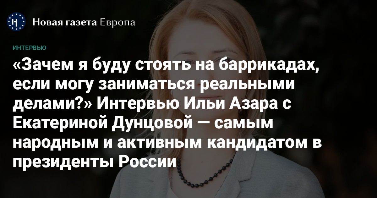 Интервью Ильи Азара с Екатериной Дунцовой — самым народным и активным кандидатом в президенты России