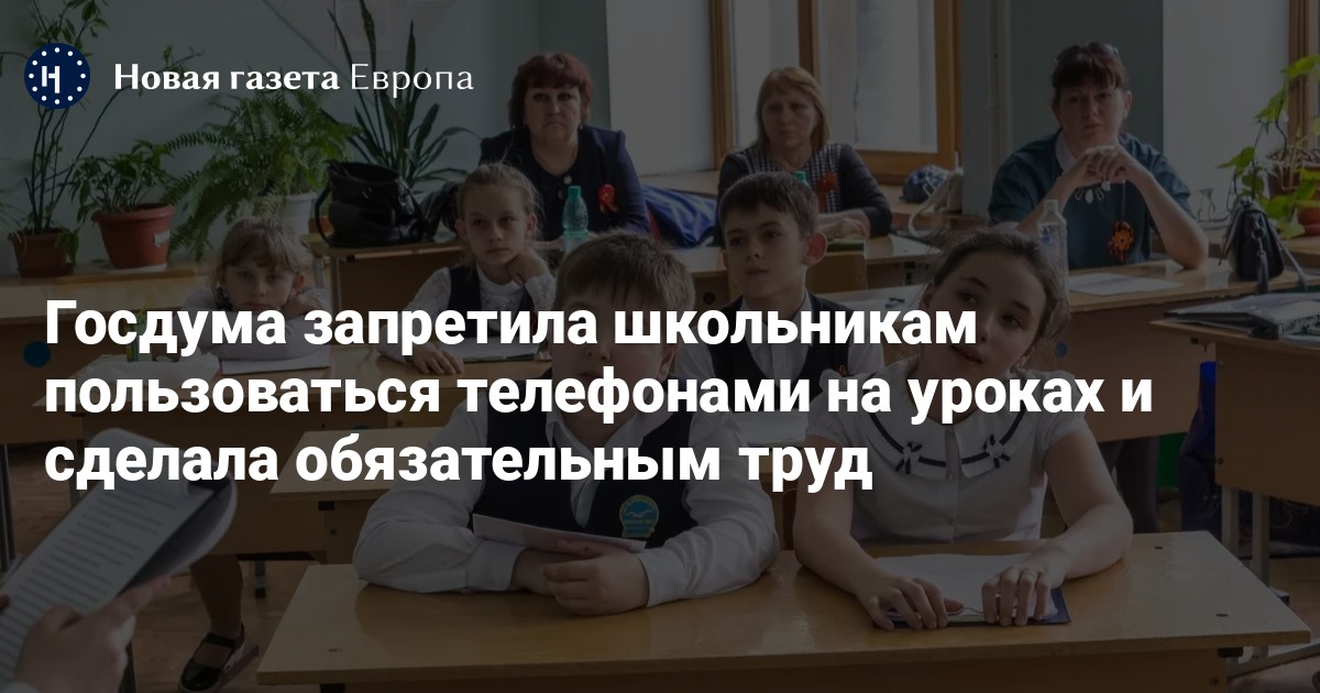 Госдума запретила школьникам пользоваться телефонами на уроках и сделала обязательным труд