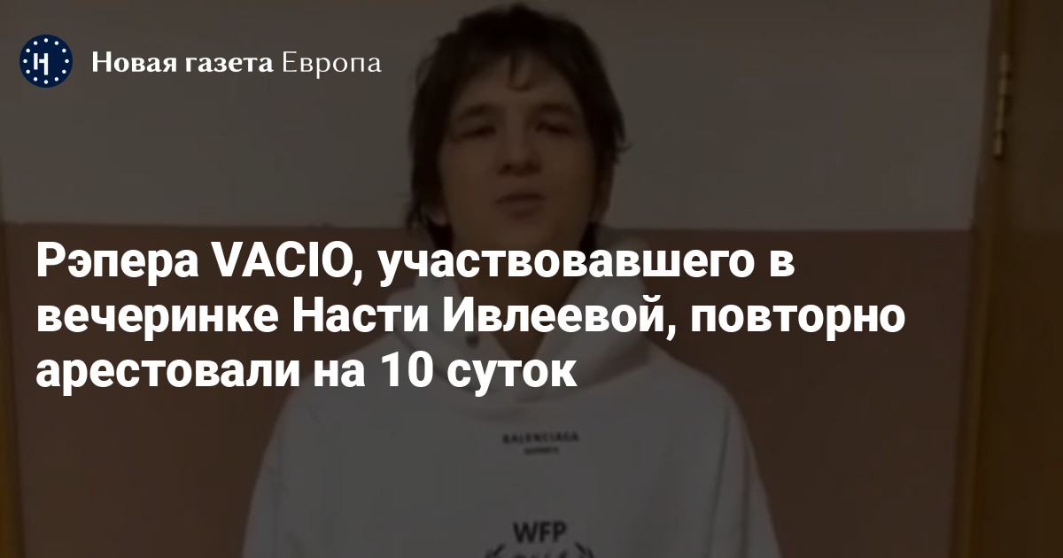Рэпер VACIO (Николай Васильев), которого арестовали после участия в вечеринке Насти Ивлеевой, пропал из спецприемника, сообщает корреспондент SOTA.