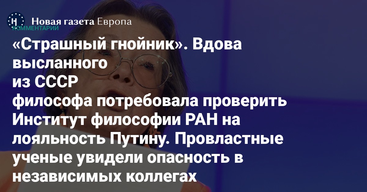 Среди «предателей» Зиновьева упомянула бывшую замдиректора РАН по научной работе Юлию Синеокую. В разговоре с «Новой-Европа» она рассказала, что происходило в Институте последние месяцы, что можно ожидать дальше и как так вышло, что российские власти считают опасными независимых философов.