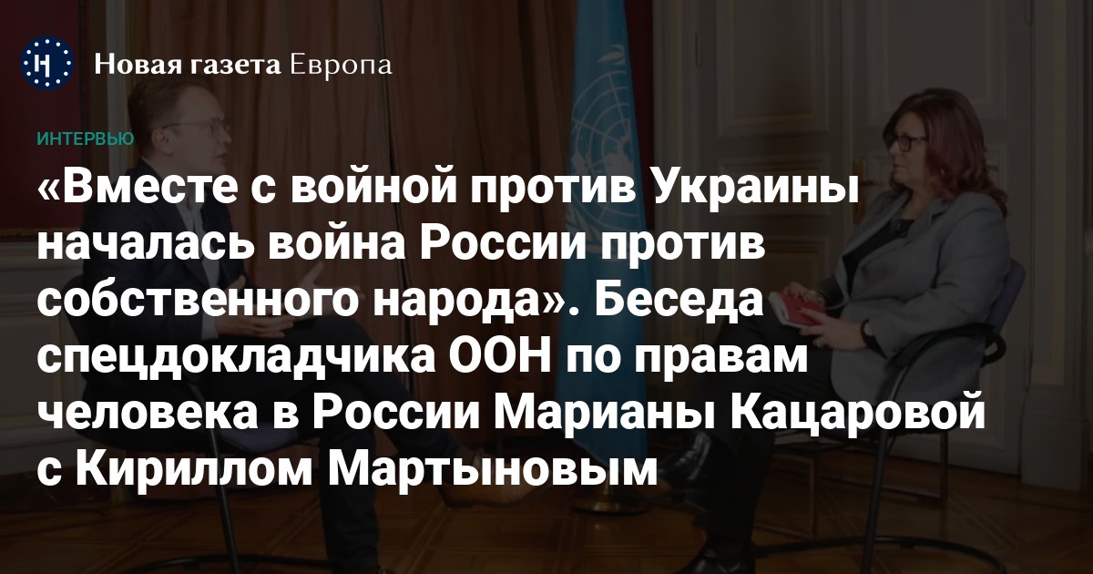 Кирилл Мартынов встретился с Марианой Кацаровой в Женеве, чтобы задать вопросы, которые прислали читатели «Новой газеты Европа», и поговорить о том, что думает ООН о выдаче аналога нансеновских паспортов россиянам и белорусам, как заставить российские власти соблюдать международное право и куда жаловаться на нарушения после закрытия для россиян доступа в Европейский суд по правам человека.
