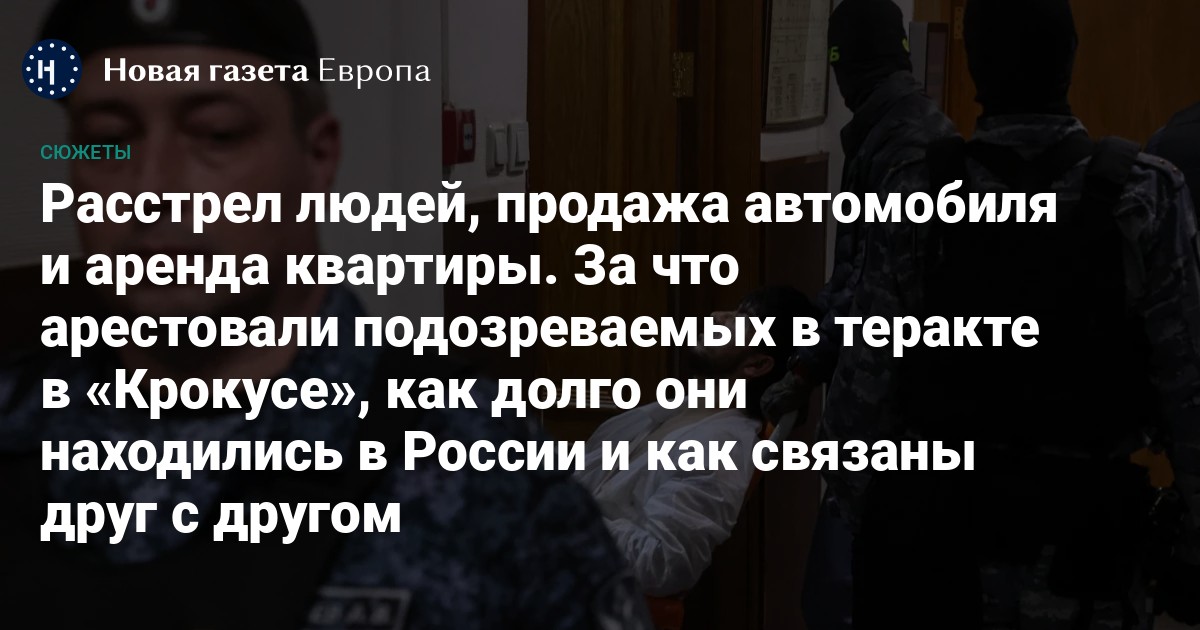 За последние три дня суд в Москве арестовал восьмерых подозреваемых в причастности к теракту в «Крокус Сити Холле». Их всех отправили в СИЗО на два месяца, вину признали только четверо. Трое арестованных, судя по данным следствия, связаны с исполнителями теракта только через продажу автомобиля, еще один — через сдачу квартиры на Авито.