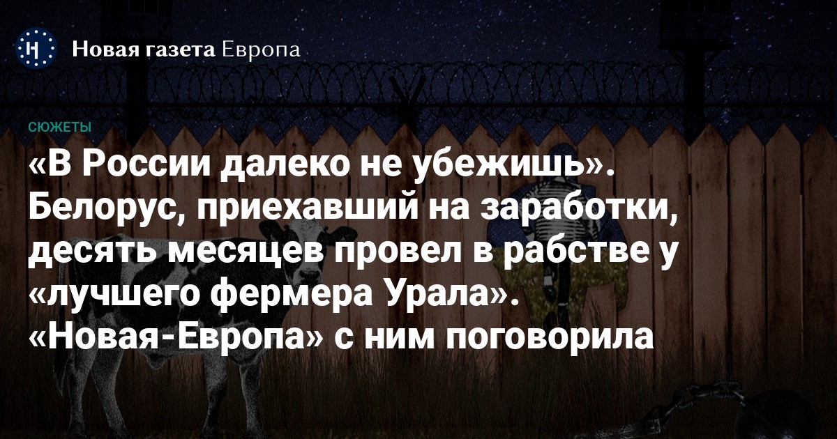 «Таких ферм много. Я слышал разговоры этих “начальников” на ферме, которые обсуждали, где и как искать беглецов. Они говорят, что на Урале, в радиусе 150 километров, есть и другие рабовладельцы, которые общаются друг с другом. Бизнес процветает, потому что всё это далеко от столицы, глушь, никакое начальство туда не доезжает. “Дать на лапу” [полиции] там гораздо проще, а людей в округе почти нет. Фактически мы были там одни.