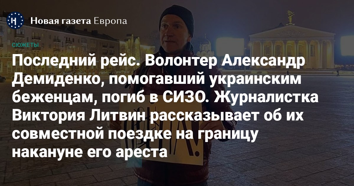 В начале апреля стало известно, что в белгородском СИЗО умер Александр Демиденко — пенсионер и волонтер, который с начала полномасштабного вторжения помог тысяче украинцев с оккупированных территорий выехать на родину, в Украину.