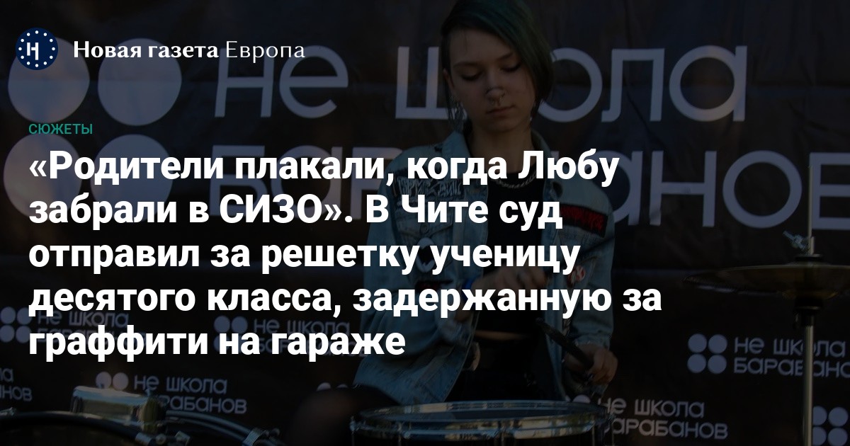 10 апреля стало известно о том, что в СИЗО отправлена читинская школьница Люба Лизунова. 17-летнюю девушку и ее знакомого Александра Снежкова обвиняют в «вандализме», «призывах к экстремизму» и «оправдании терроризма» (ст. 214, 280 и 205.2 УК РФ соответственно).