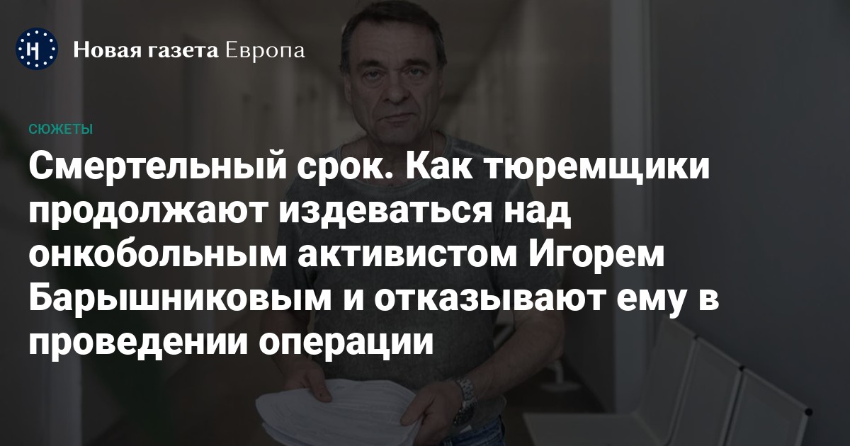 Как тюремщики продолжают издеваться над онкобольным активистом Игорем Барышниковым и отказывают ему в проведении операции