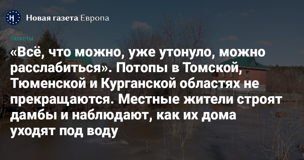 «В Кетово уже всё, что можно, утонуло, можно расслабиться. Как Шумков сказал — «еще наживем». Правда, есть у него имущество в затопляемой зоне или нет, не уточнил. И как наживать — тоже», — заявил один из местных жителей.