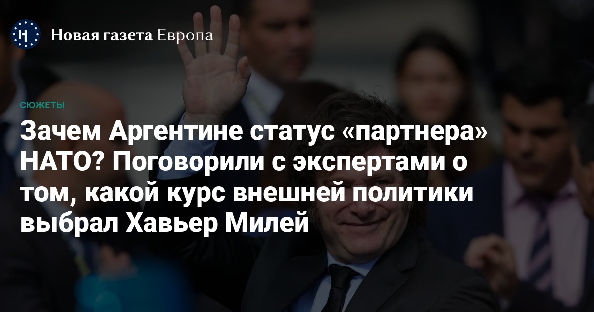 Первые месяцы своего пребывания на посту президента Аргентины Хавьер Милей активно перестраивал курс внешней политики в пользу сотрудничества с США, Израилем и Украиной. И новое его решение только подтверждает этот курс — президент Аргентины подал запрос на статус глобального партнера НАТО. Как это может отразиться на состоянии страны и как на решение Милея отреагировали в Москве и в Вашингтоне, читайте в материале «Новой газеты Европа».