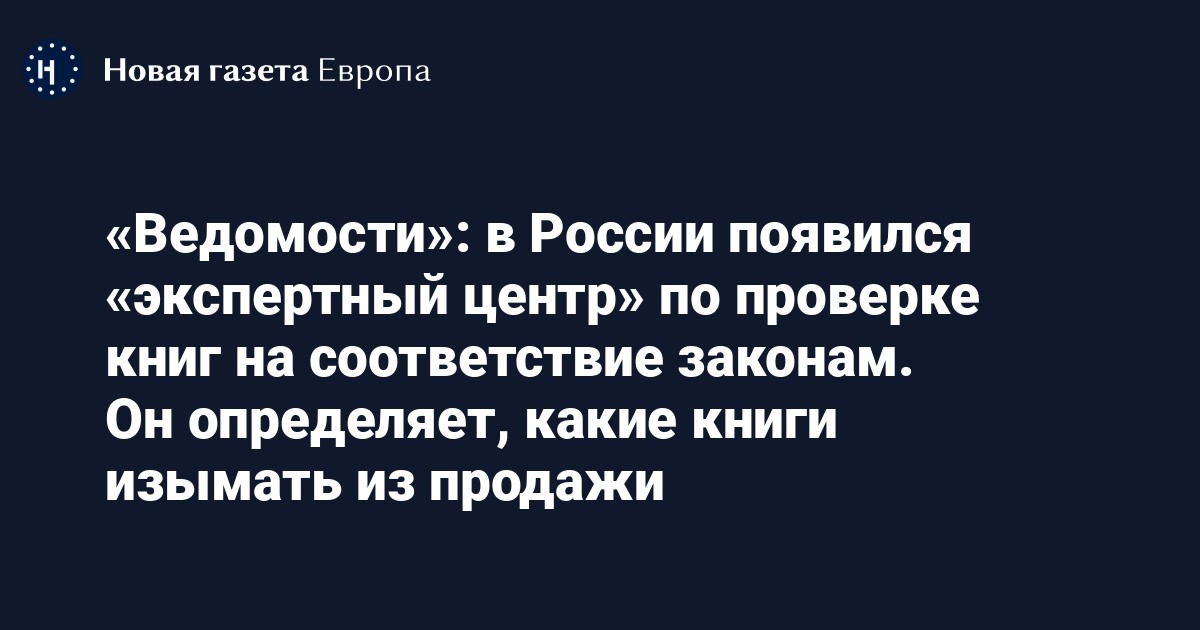 «Ведомости»: в России появился «экспертный центр» по проверке книг на соответствие законам. Он определяет, какие книги изымать из продажи