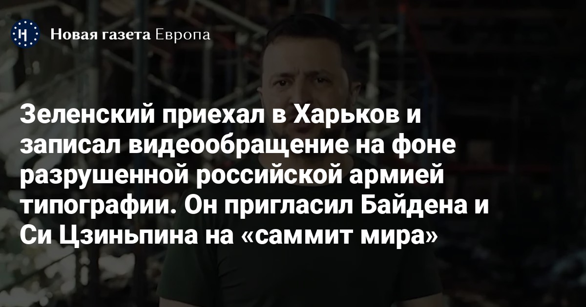 Зеленский приехал в Харьков и записал видеообращение на фоне разрушенной российской армией типографии. Он пригласил Байдена и Си Цзиньпина на «саммит мира»