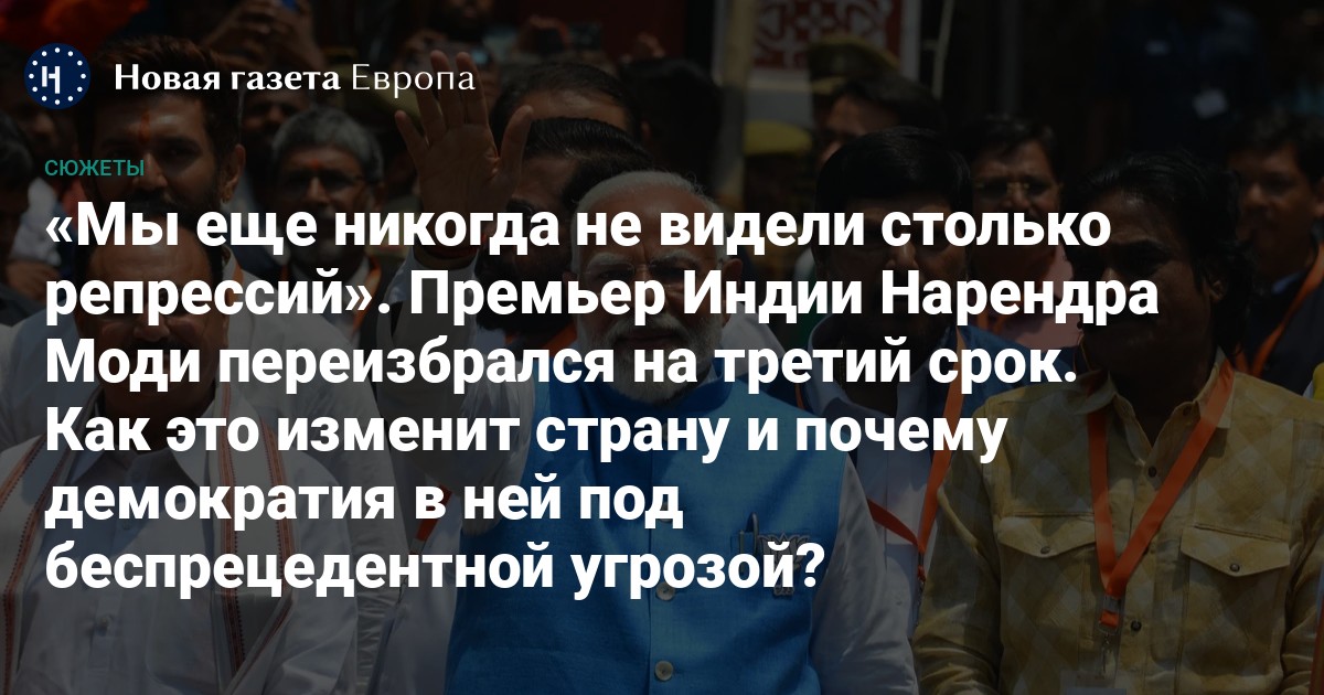 Он поощряет антимусульманскую риторику, при нем постоянно ссылаются на угрозу ислама и исламского терроризма. И это стало ключом к его решениям во власти. Его победа на выборах — это первый случай со времен Неру (первый премьер-министр — Прим. ред.), когда премьер-министр Индии избрался на третий срок подряд, так что это огромное достижение.