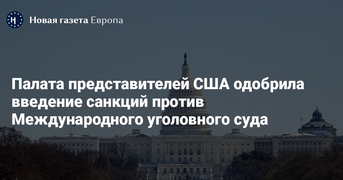 Палата представителей США одобрила законопроект, который позволит вводить санкции в отношении Международного уголовного суда (МУС) за рассмотрение дел в отношении Соединенных Штатов и их союзников.
