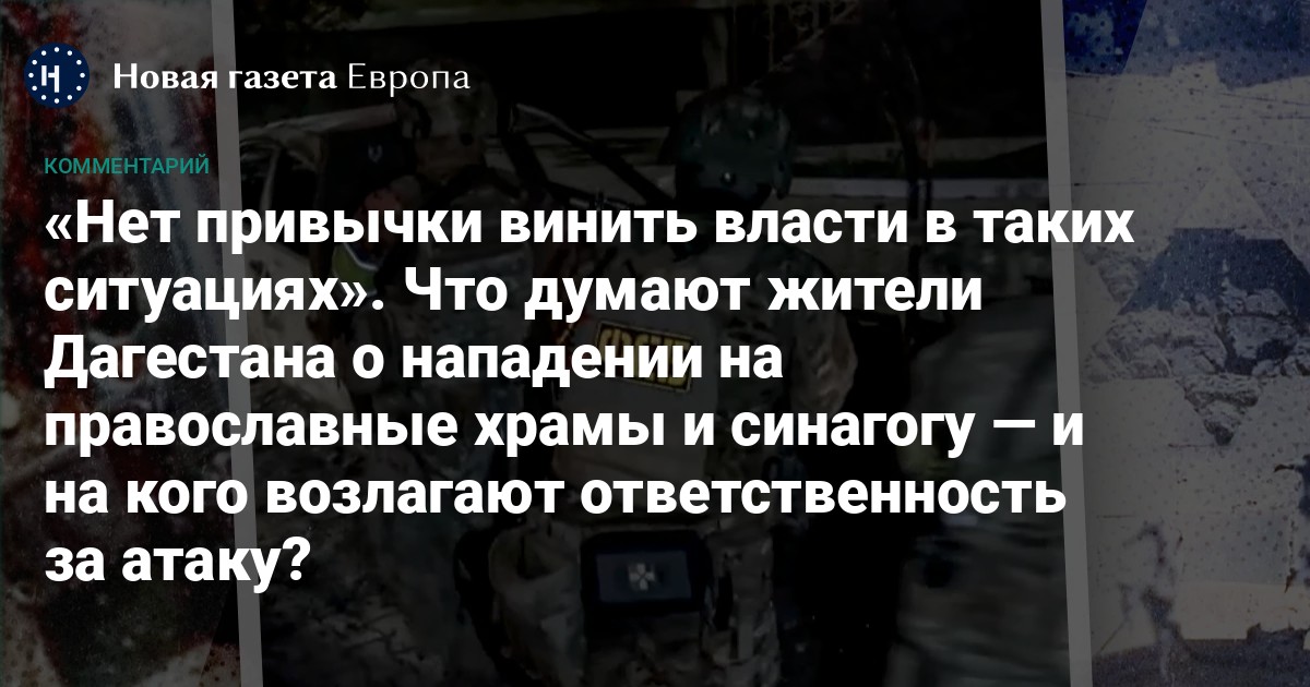 Что думают о нападении жители республики и кого винят в случившемся? «Новая-Европа» поговорила с двумя жителями Дагестана (они предпочли остаться анонимными по соображениям безопасности).