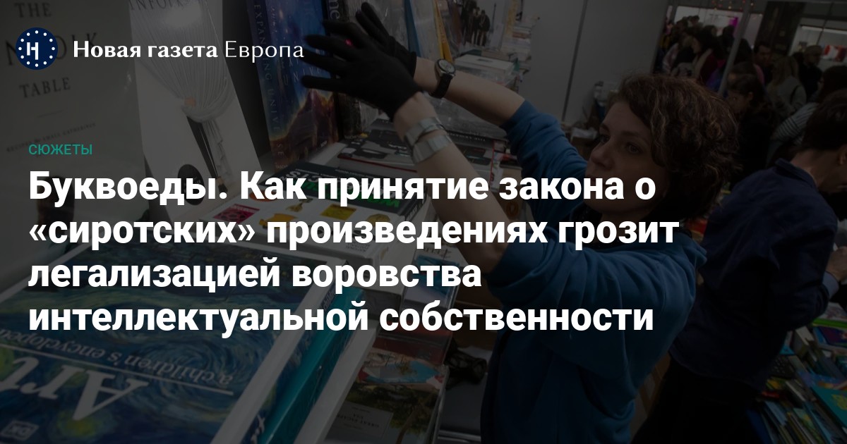 Надо сказать, что тот законопроект был составлен с оглядкой на европейские законы и даже в чём-то опережал их: он предусматривал значительно более простую и эффективную процедуру легализации «сиротских» книг, чем описанная в Директиве ЕС о «сиротских» произведениях, которая предполагала прежде всего их коммерческое использование. Европейский механизм оказался неработоспособным. И по прошествии нескольких лет, когда им попытались воспользоваться всего раз сто, Евросоюз проанализировал результаты внедрения закона (в частности, опыт Великобритании) и подошел к проблеме с другого конца.