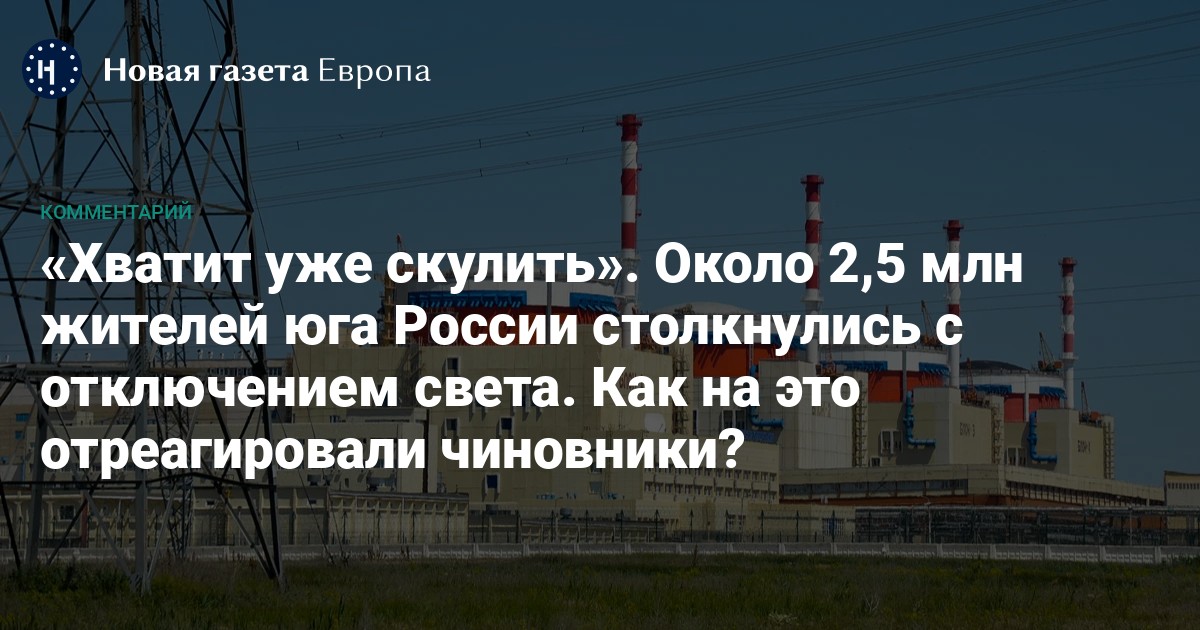 Около 2,5 млн жителей юга России столкнулись с отключением света. Как на это отреагировали чиновники?