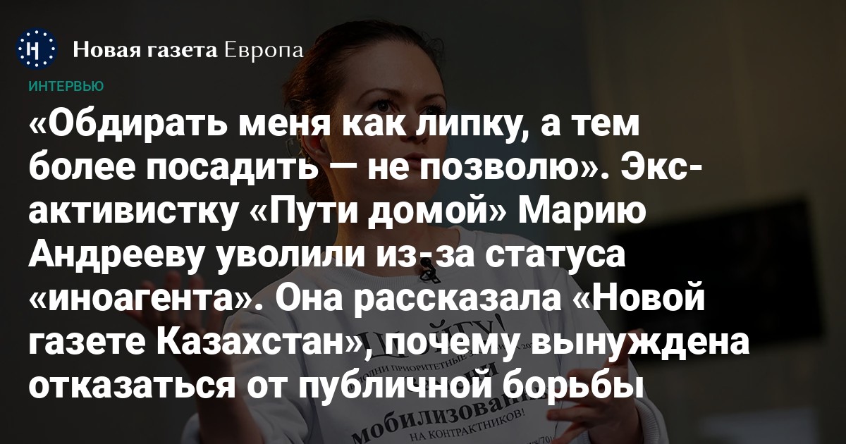 Экс-активистку «Пути домой» Марию Андрееву уволили из-за статуса «иноагента». Она рассказала «Новой газете Казахстан», почему вынуждена отказаться от публичной борьбы