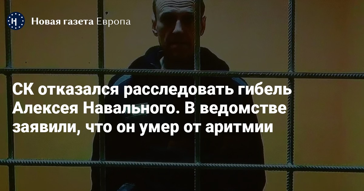 Следственный комитет России отказался расследовать гибель Алексея Навального в колонии «Харп» в ЯНАО. Об этом сообщила вдова политика Юлия Навальная.