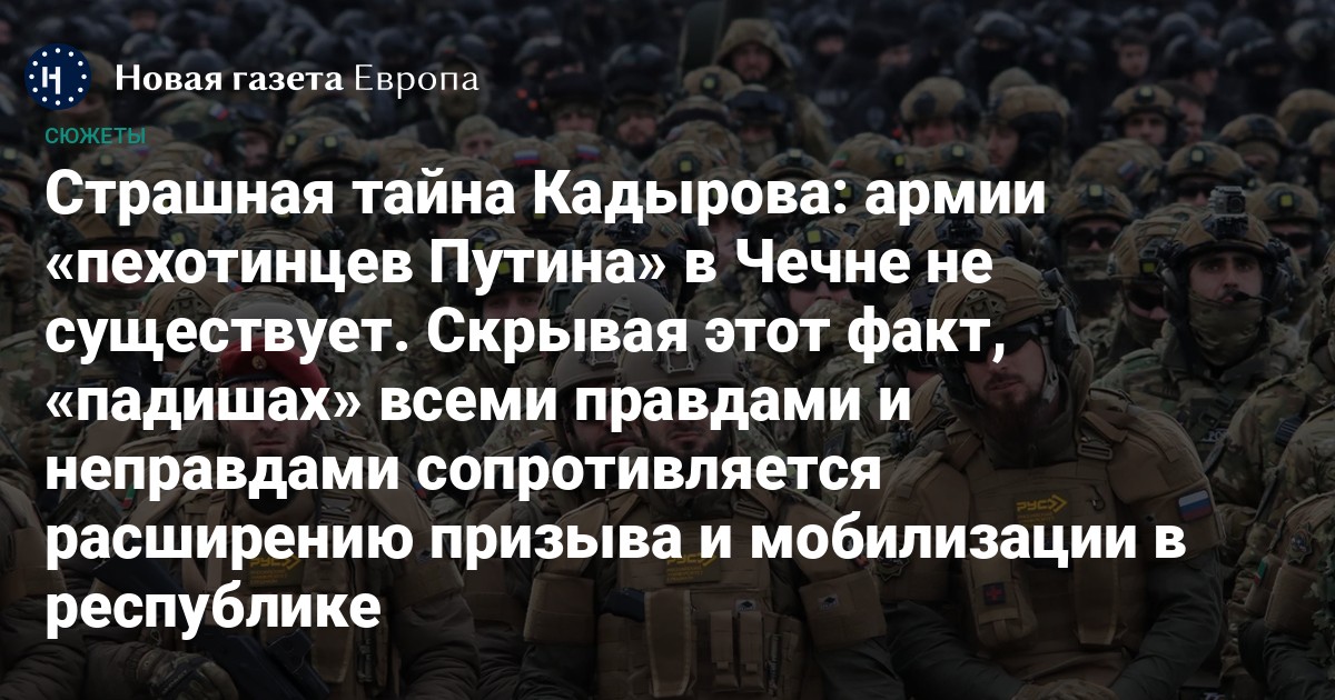 В Чечне вскоре после отъезда Путина, по данным источников «Новой-Европа», руководителям районных ОМВД поступило указание обеспечить подписание добровольческих контрактов из расчета 25 человек на отдел полиции, что может свидетельствовать только о том, что никакого резерва желающих повоевать в Украине у Кадырова нет, а есть лишь отшлифованное до блеска умение играть в наперстки и желание всеми силами избежать массового призыва в Чеченской республике.