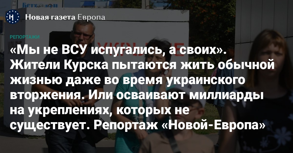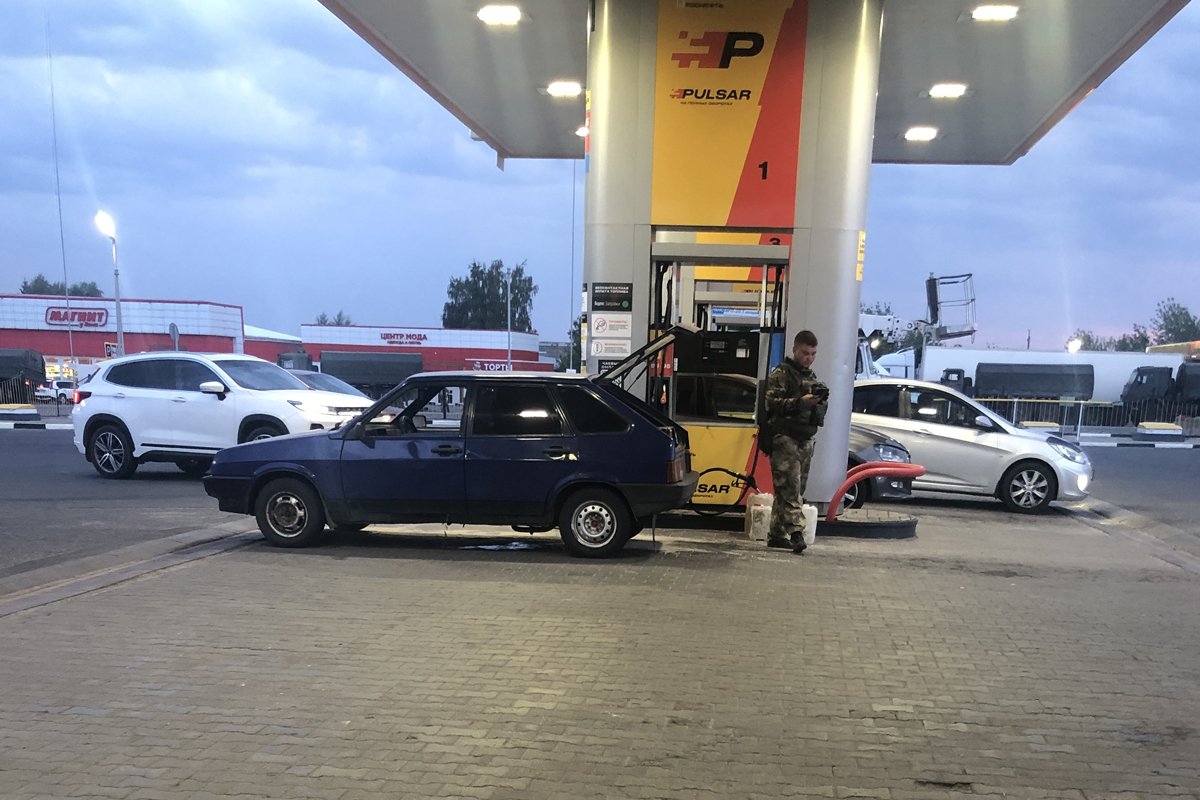 Куряне обсуждают всё это неохотно. Внешне Курск — город как город, только постоянно ревет сирена. И еще из вполне мирных на вид «Лад» с гражданскими номерами или без номеров то и дело выходят люди в камуфляже с автоматами и с запасными рожками на поясе. Куряне стоят вместе с ними в очередях на АЗС, а потом на все лады ругают [украинцев], так и норовящих обстрелять мирный гражданский автомобиль.