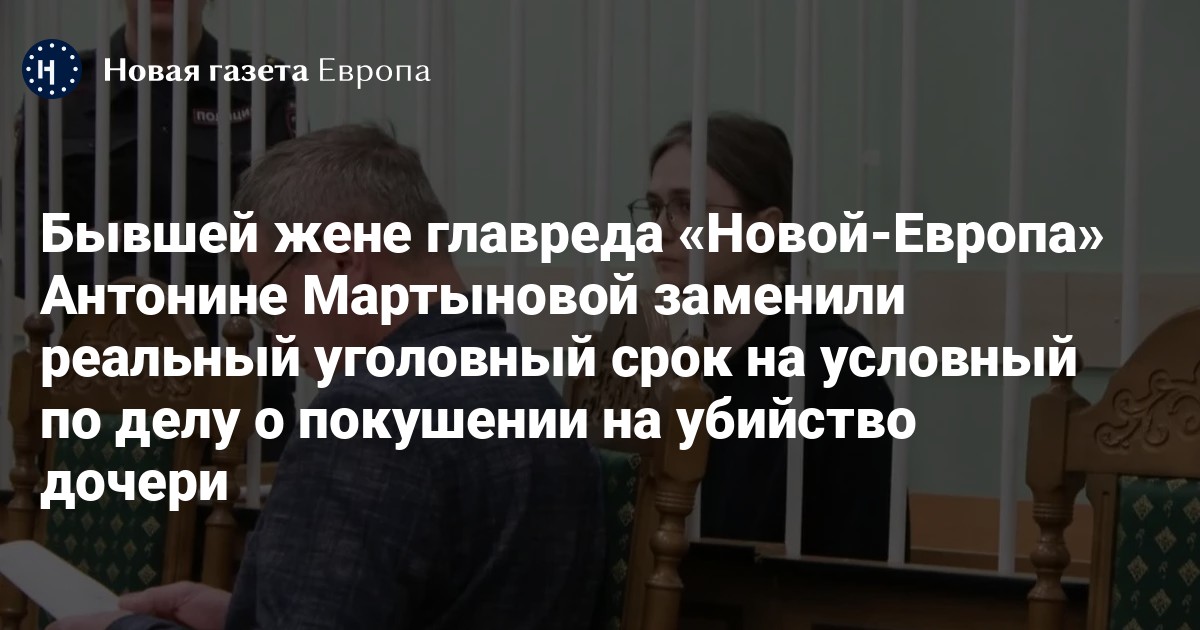 Тройка судей Первого апелляционного суда по просьбе прокуратуры снизила уголовный срок бывшей жене главреда «Новой-Европа» Антонине Мартыновой с девяти лет до восьми, и заменила его с реального на условный. Об этом сообщает «Медиазона».