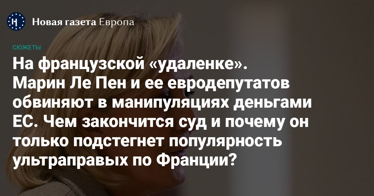 Уже вторую неделю в Париже идет судебный процесс о нецелевом использовании средств, выделяемых Европарламентом на зарплаты помощников депутатов. Обвиняемые — члены французской ультраправой партии «Национальное объединение», в том числе их лидер Марин Ле Пен, уже трижды выдвигавшаяся в президенты страны.