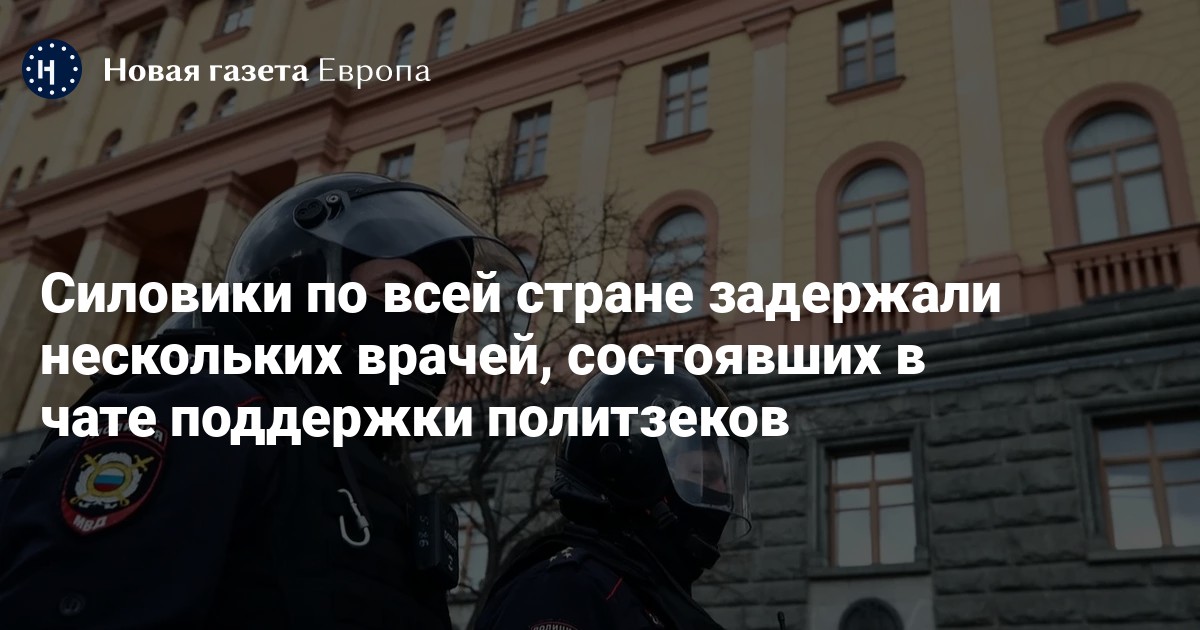 Силовики по всей стране задержали нескольких врачей, состоявших в чате поддержки политзеков