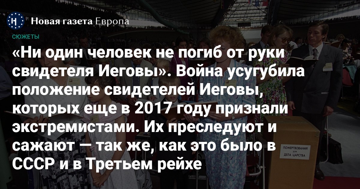 Война усугубила положение свидетелей Иеговы, которых еще в 2017 году признали экстремистами. Их преследуют и сажают — так же, как это было в СССР и в Третьем рейхе