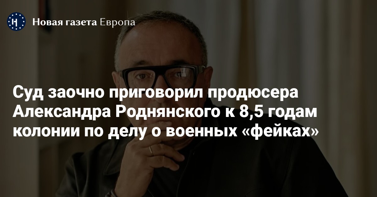 Басманный районный суд Москвы заочно приговорил продюсера Александра Роднянского к 8,5 годам колонии по делу о военных «фейках». Об этом сообщил корреспондент «Медиазоны» из зала суда.