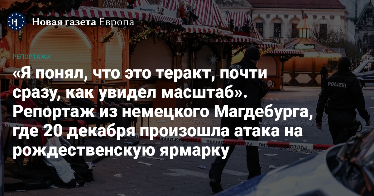 Еще по дороге к месту теракта я смотрю подборку открывшихся рождественских ярмарок, которую постит русскоязычный телеграм-канал DW. Последним в этой подборке упоминается базар в Магдебурге — через несколько секунд этот пост удалят, в контексте произошедшего накануне такой материал выглядит зловеще.