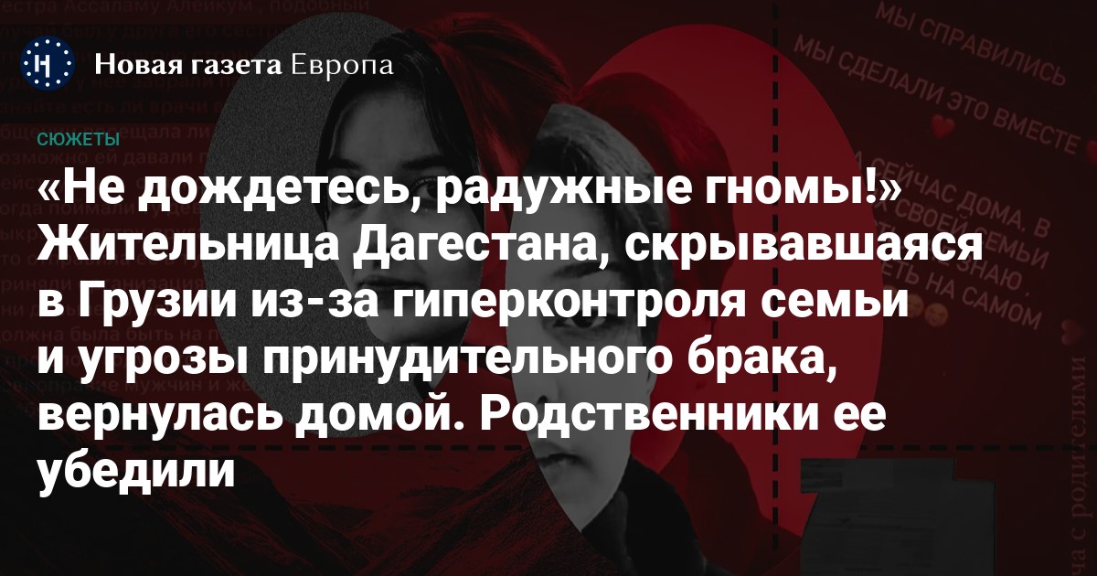 «Я — Пирова Заира, совершеннолетняя девушка. Я добровольно ушла из дома из-за избыточного контроля и нежелания в будущем выходить замуж. Мои родственники искали меня, писали заявления в полицию, угрожали моим друзьям. Сейчас меня ищут в Грузии, и в грузинских медиа пишут, что меня якобы похитили. Это неправда. Прошу меня не искать. Я не хочу возвращаться домой, потому что боюсь, что там мне грозит опасность», — говорит Заира.