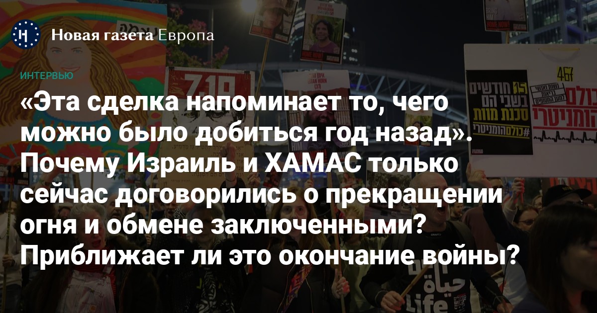 Что подтолкнуло стороны к заключению соглашения спустя 15 месяцев войны и более года с первой и последней сделки по освобождению заложников? Как это повлияет на политику внутри Израиля? «Новая-Европа» поговорила об этом с израильским политологом Михаилом Пелливертом, автором телеграм-канала об Израиле.