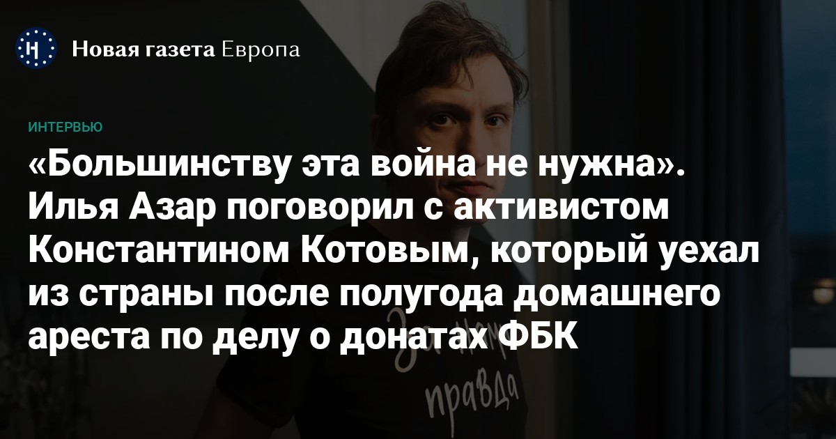 Илья Азар поговорил с активистом Константином Котовым, который уехал из страны после полугода домашнего ареста по делу о донатах ФБК
