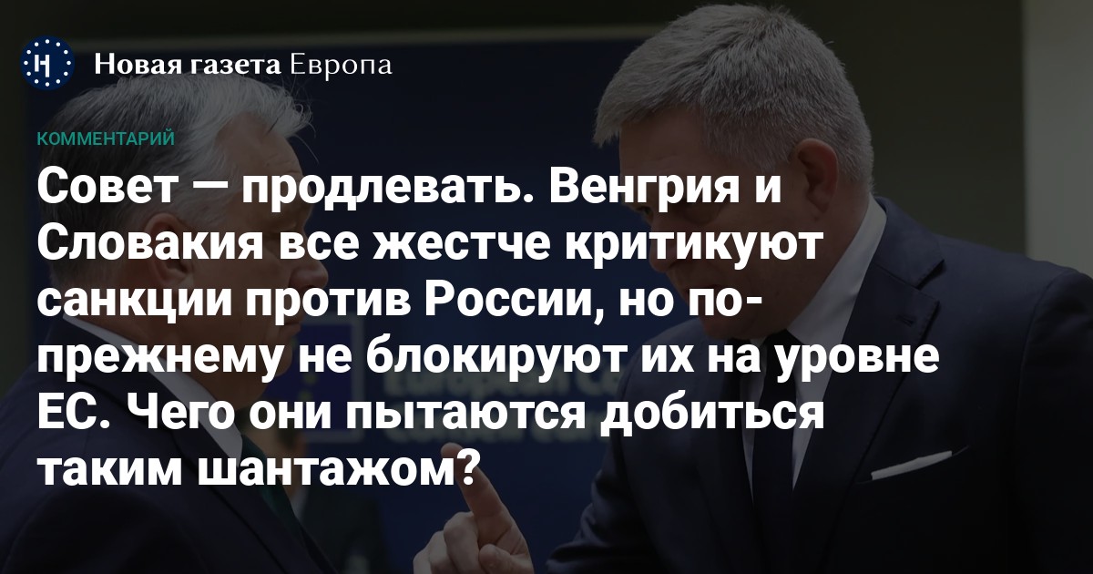 Совет ЕС еще на полгода продлил санкции в отношении РФ, которые начали вводиться после аннексии Крыма в 2014 году. К январю 2025-го эта процедура окончательно перестала быть формальной. Интригу по поводу решения, которое должно приниматься консенсусом 27 стран ЕС, создают две из них — Венгрия и Словакия. Премьер-министры Виктор Орбан и Роберт Фицо утверждают, что антироссийские ограничительные меры наносят ущерб гражданам их стран, а также всем европейцам.