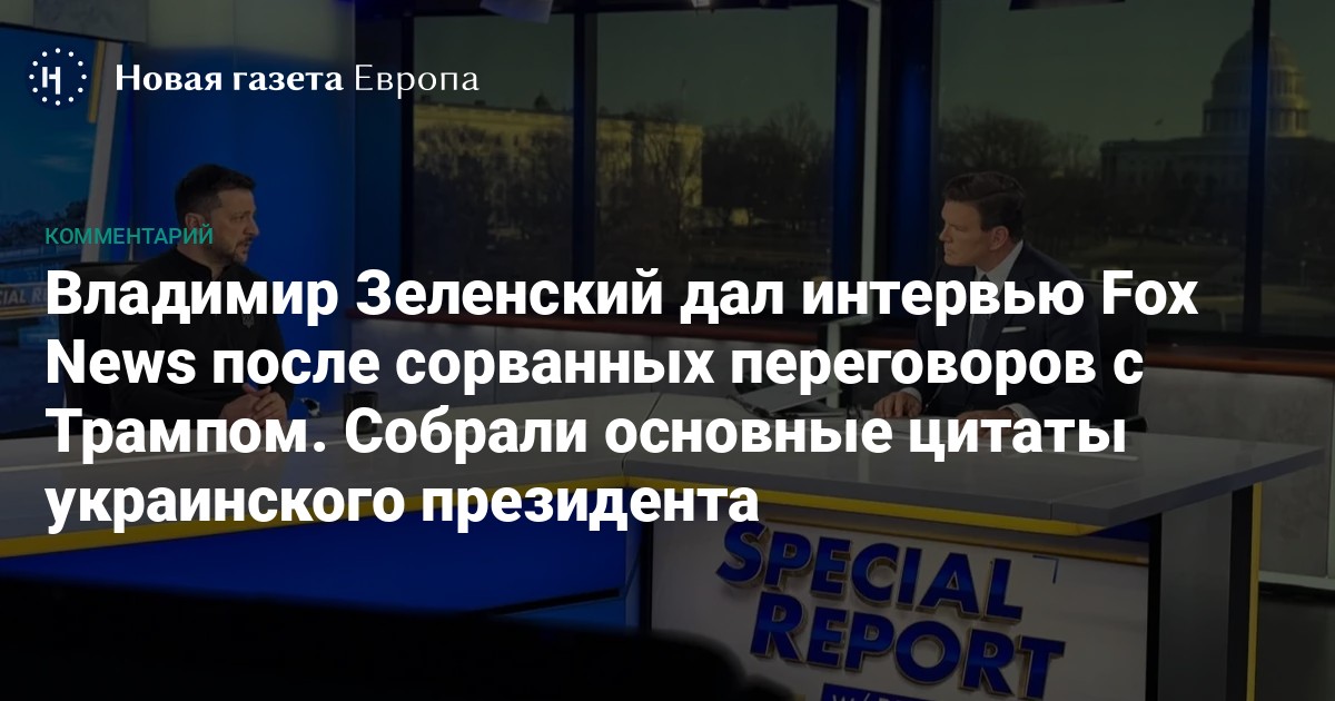 Переговоры президента США Дональда Трампа и украинского лидера Владимира Зеленского провалились после словесной перепалки между политиками. Вскоре после Зеленский дал интервью телеканалу Fox News, в котором поделился мнением о встрече с американским коллегой, выразил позицию по сделке о минеральных ресурсах и рассказал, какими он видит мирные переговоры. «Новая-Европа» собрала основные цитаты.