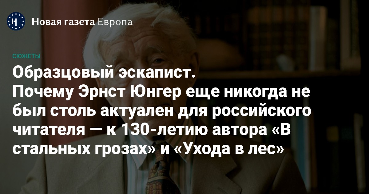 Когда имя Эрнста Юнгера упоминается на русском языке, происходит это, как правило, в одном из двух противоположных контекстов. Или в интеллектуально-снобистском — где спорного мыслителя под минималистичными обложками печатает Ad Marginem, а издания вроде «Горького» и «Логоса» не слишком популярно эту продукцию анализируют; или же в людоедском — где «германским литературным кшатрием» восхищаются колумнисты газеты «Завтра» в компании с Прохановым и Прилепиным, нацболы пишут панегирики «непримиримому бойцу с системой», а Александр Дугин ссылается на юнгеровское эссе в статье под заголовком «Экзистенциальное обоснование СВО».