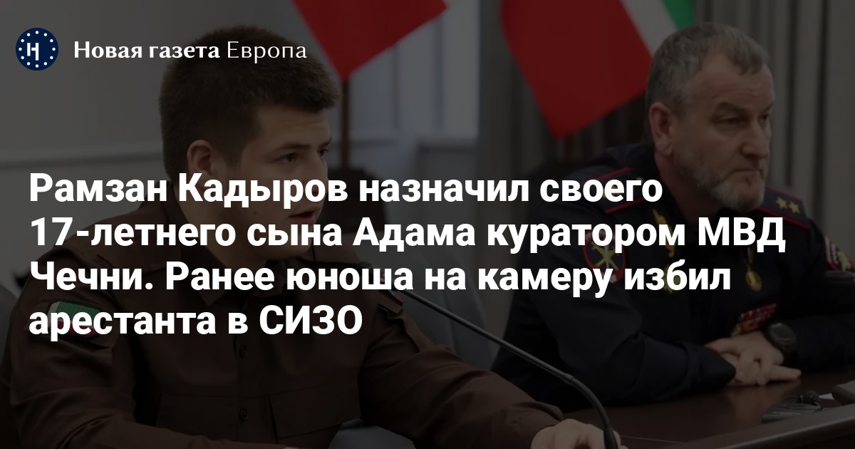 Глава Чечни Рамзан Кадыров назначил своего 17-летнего сына Адама куратором регионального управления МВД. Об этом 29 марта сообщила пресс-служба ведомства, 1 апреля об этом также рассказали журналисты ГТРК «Вайнах.
