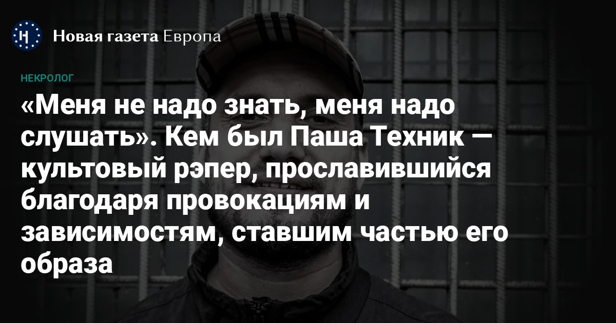 Множество представителей рэп-индустрии выразили соболезнования близким Техника и поделились воспоминаниями о музыканте, который оставил важный след в их жизни. «Новая газета Европа» рассказывает о том, как Паша Техник стал культовой фигурой для двух поколений.