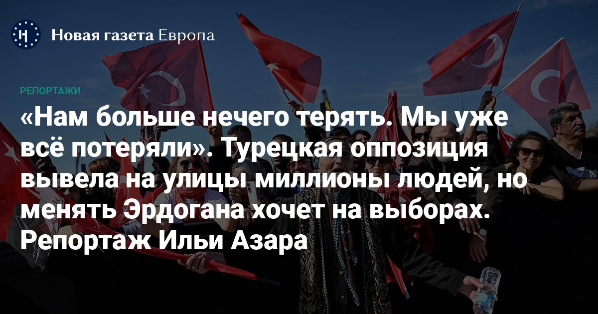 Специальный корреспондент «Новой газеты Европа» Илья Азар съездил в Стамбул, посетил гигантский митинг Республиканской партии (организаторы заявили о 2,2 млн участников) и пообщался с одним из организаторов студенческого сопротивления.