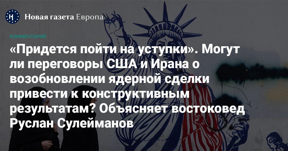 Что обсуждают США и Иран, насколько конструктивными могут оказаться переговоры и чем они отличаются от сделки 2015 года? «Новая газета Европа» разбирается вместе с востоковедом Русланом Сулеймановым.