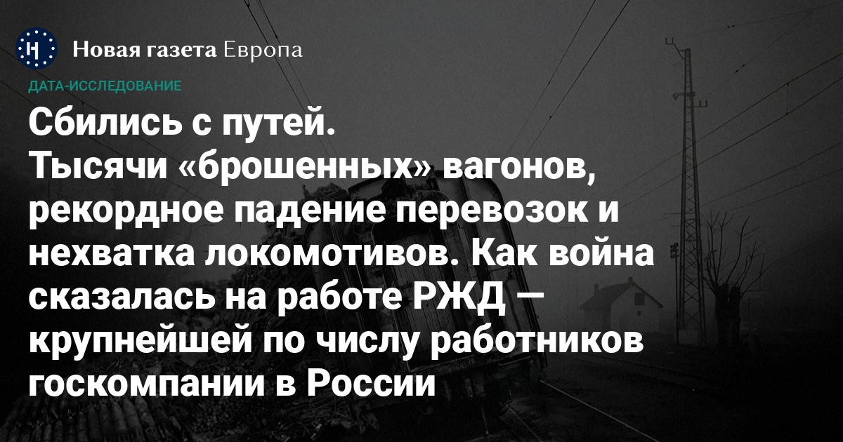 РЖД оказалась в сильнейшем с 2008 года кризисе. Часть грузов у госмонополии отобрали санкции на российские товары, а с прошлого года по компании бьет падение отгрузок зерна и стройматериалов. Дороги закупорены не только приоритетными военными грузами, но и невостребованными вагонами, а локомотивов и работников критически не хватает. «Новая газета Европа» разбиралась, насколько серьезны проблемы РЖД, что они говорят о состоянии российской экономики и не придется ли разбирать ненужные пути.