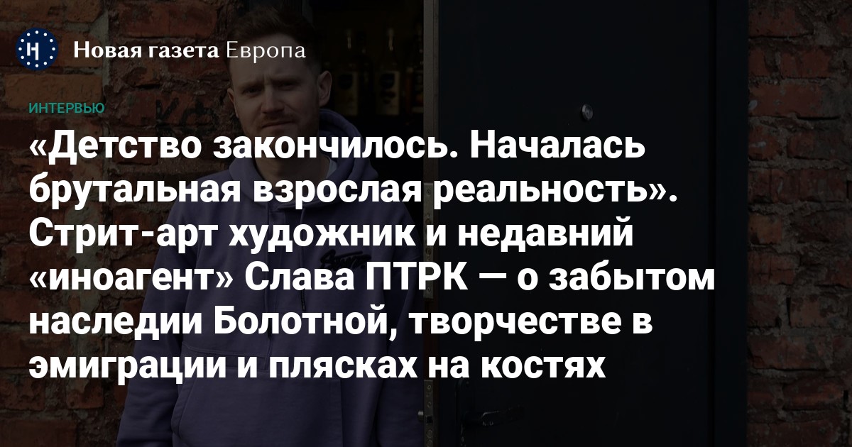 В Парижской L Galerie с 18 по 24 июня проходит выставка The Pavement Echoes одного из самых известных российских стрит-арт художников Славы Ptrk. Он работает с политическими темами и с начала 2010-х открыто критикует путинский режим. В 2022-м Слава уехал из России, участвует в антивоенных выставках в Европе и создает новые проекты, посвященные осмыслению войны и тоталитаризма. В марте 2025-го Минюст внес его в реестр «иноагентов». Проект Славы Ptrk в Париже посвящен протестному движению 2010-х. «Новая газета Европа» поговорила со Славой о его последних работах, российском искусстве в эмиграции и внутри страны и о роли художника во время войны.
