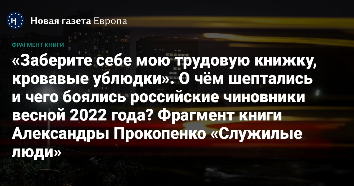Бывшая журналистка президентского пула, успевшая поработать в Центробанке, а ныне научный сотрудник Carnegie Russia Eurasia Center в Берлине Александра Прокопенко дописывает книгу под рабочим названием «Служилые люди». Она основана на беседах и включенном наблюдении за российскими высокопоставленными чиновниками и бизнесменами, технократами и госменеджерами — теми, кого принято называть элитой, — и рассказывает о том, как это сообщество восприняло войну в Украине и как она их изменила.