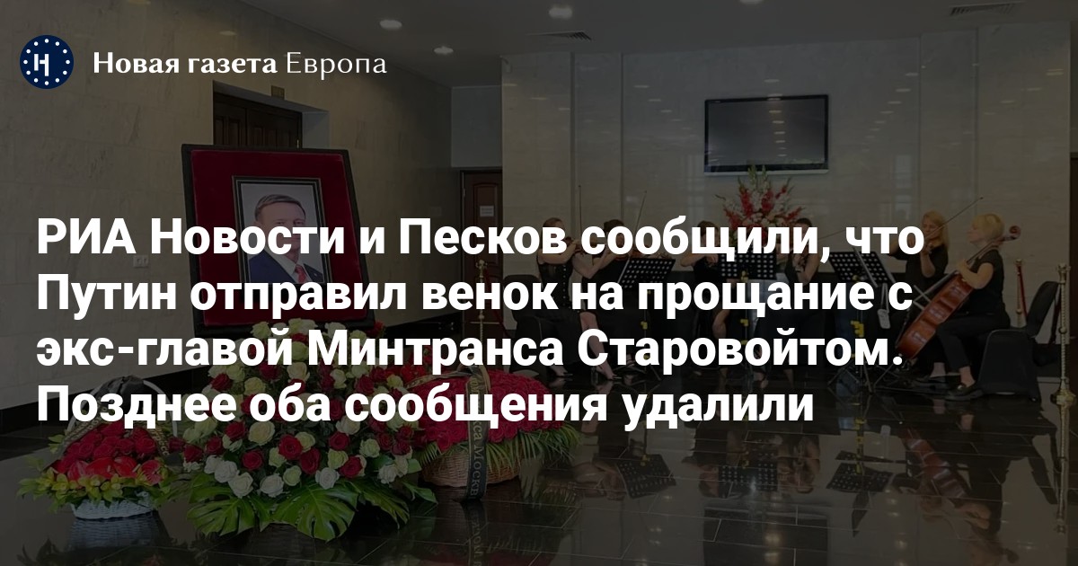 РИА Новости и Песков сообщили, что Путин отправил венок на прощание с экс-главой Минтранса Старовойтом. Позднее оба сообщения удалили