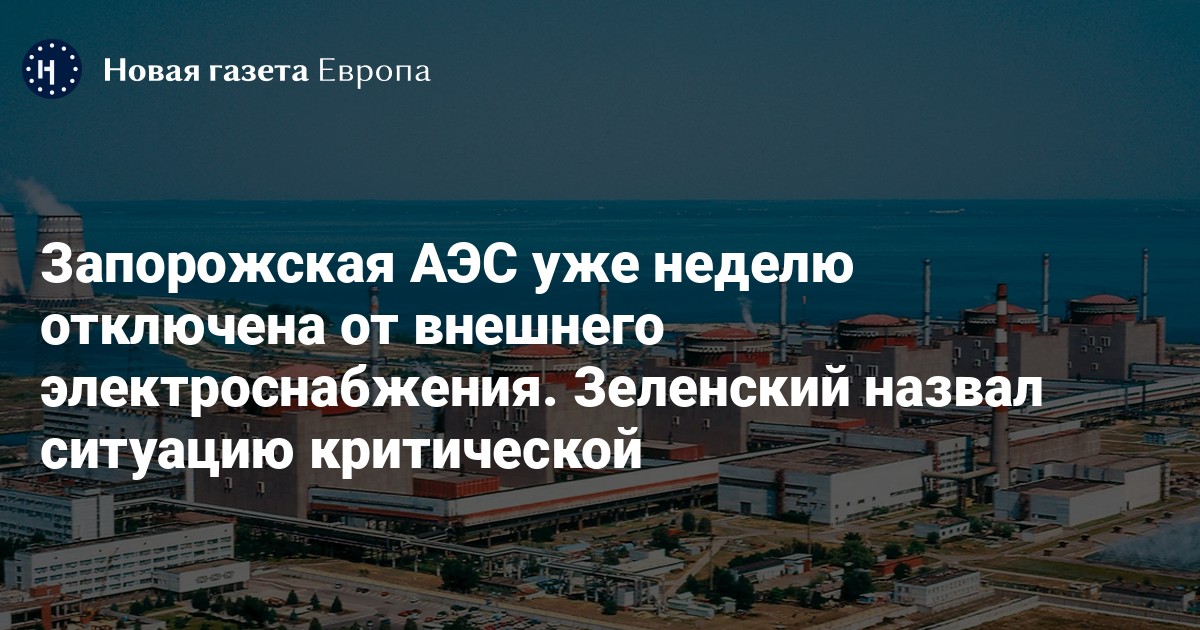 Запорожская АЭС уже неделю отключена от внешнего электроснабжения. Зеленский назвал ситуацию критической