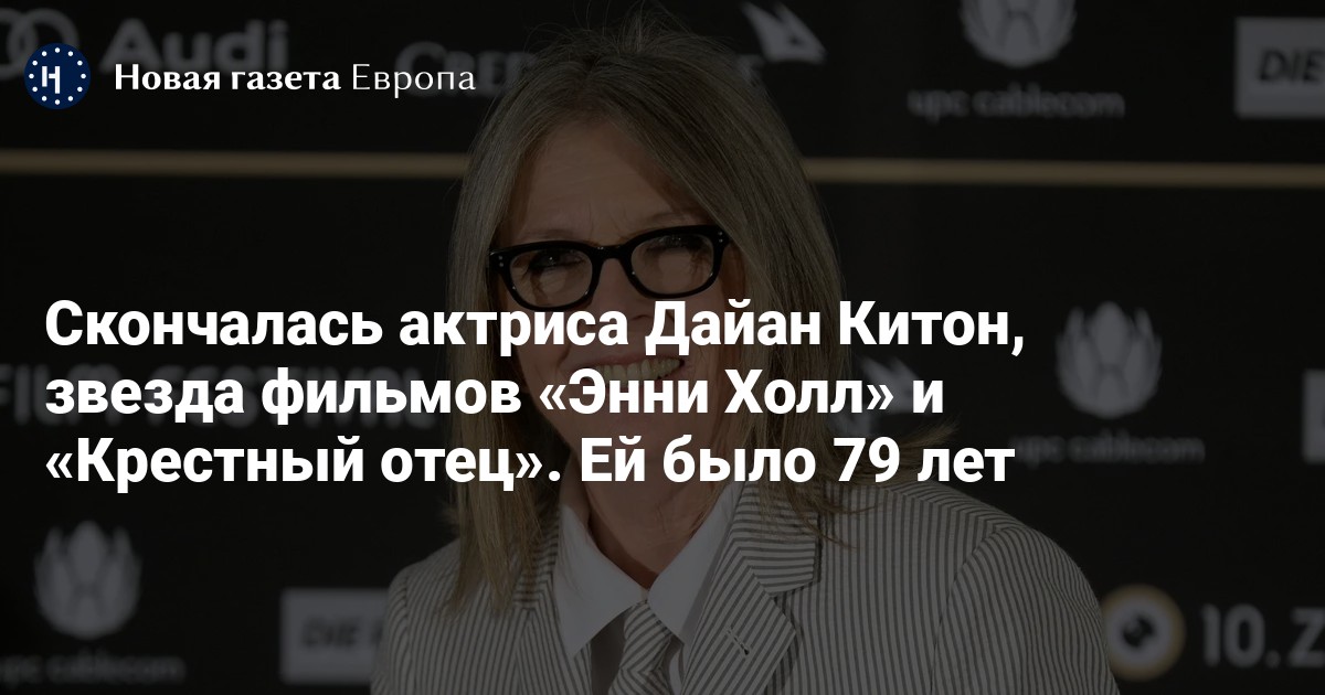 В возрасте 79 лет скончалась американская актриса Дайан Китон, известная по фильмам «Энни Холл» и «Крестный отец». Об этом пишет издание People со ссылкой на представителя семьи.