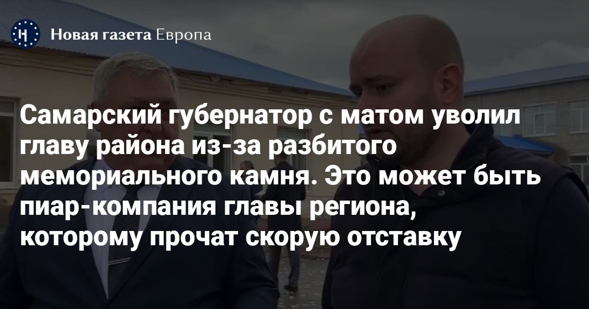 Губернатор Самарской области Вячеслав Федорищев с матом уволил главу Кинельского района Юрия Жидкова из-за разбитого мемориального камня. Об этом глава региона сообщил в своих сетях.