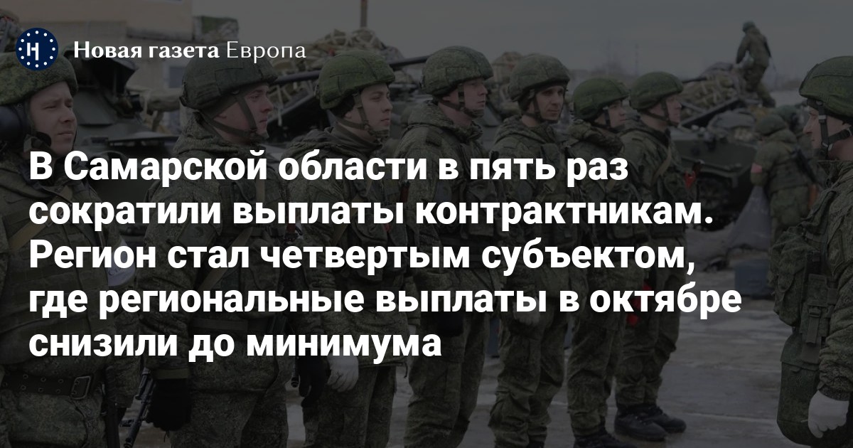 Власти Самарской области снизили региональную выплату за заключение контракта с Минобороны сразу в пять раз: с 2,1 млн до 400 тысяч рублей. Об этом говорится на сайте службы по контракту.