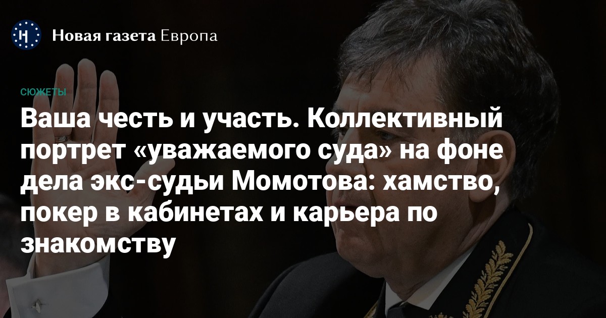 Уже в 2010 году постановлением Совета Федерации Момотов был назначен на должность верховного судьи. В 2016 году на заседании IX Всероссийского съезда судей был избран председателем Совета судей России. Это даже не скачок в карьере, а телепортация.