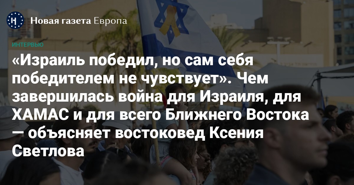 Соглашение о прекращении огня в секторе Газа подписаны, израильские заложники вернулись домой, Армия обороны Израиля отошла к буферной зоне у границы, ХАМАС заново обживается в разрушенном секторе и уже проводит там казни. Дальше в Газе ждут «команду мира» во главе с Дональдом Трампом и Тони Блэром, группу управленцев-технократов и денежных вливаний из Европы и арабских стран. Означает ли это, что самая долгая война в истории государства Израиль закончилась? Получат ли израильтяне долгожданный покой, а палестинцы — полноценное государство? На вопросы «Новой-Европа» отвечает востоковед Ксения Светлова, автор телеграм-канала «Восточный синдром», в прошлом депутат кнессета.